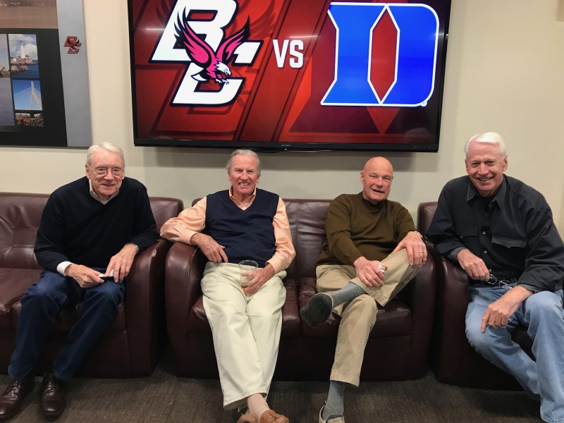 John Guthrie, Don Meroth, Paul Larkin and Bob Murray at a recent BC hoop game! Lets get some more recent pictures posted! Anyone else who has a picture to send, either current or from school days, please send them in! |