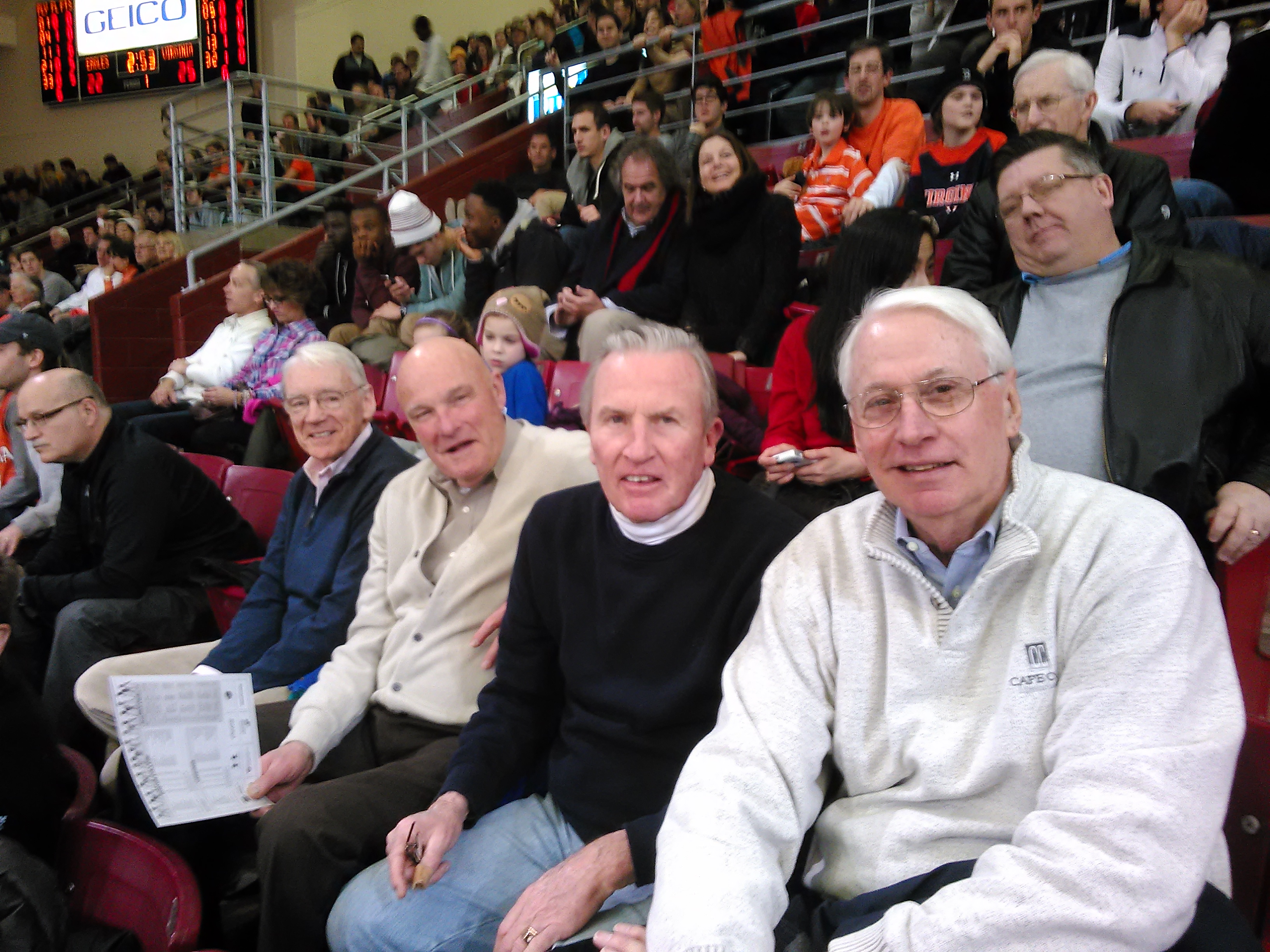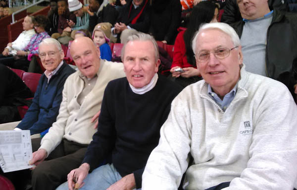 40% of the 1961 Basketball team at a recent BC game, courtesy of John Guthrie. Left to right: John, Don Meroth, Paul Larkin, and Bob Murray.