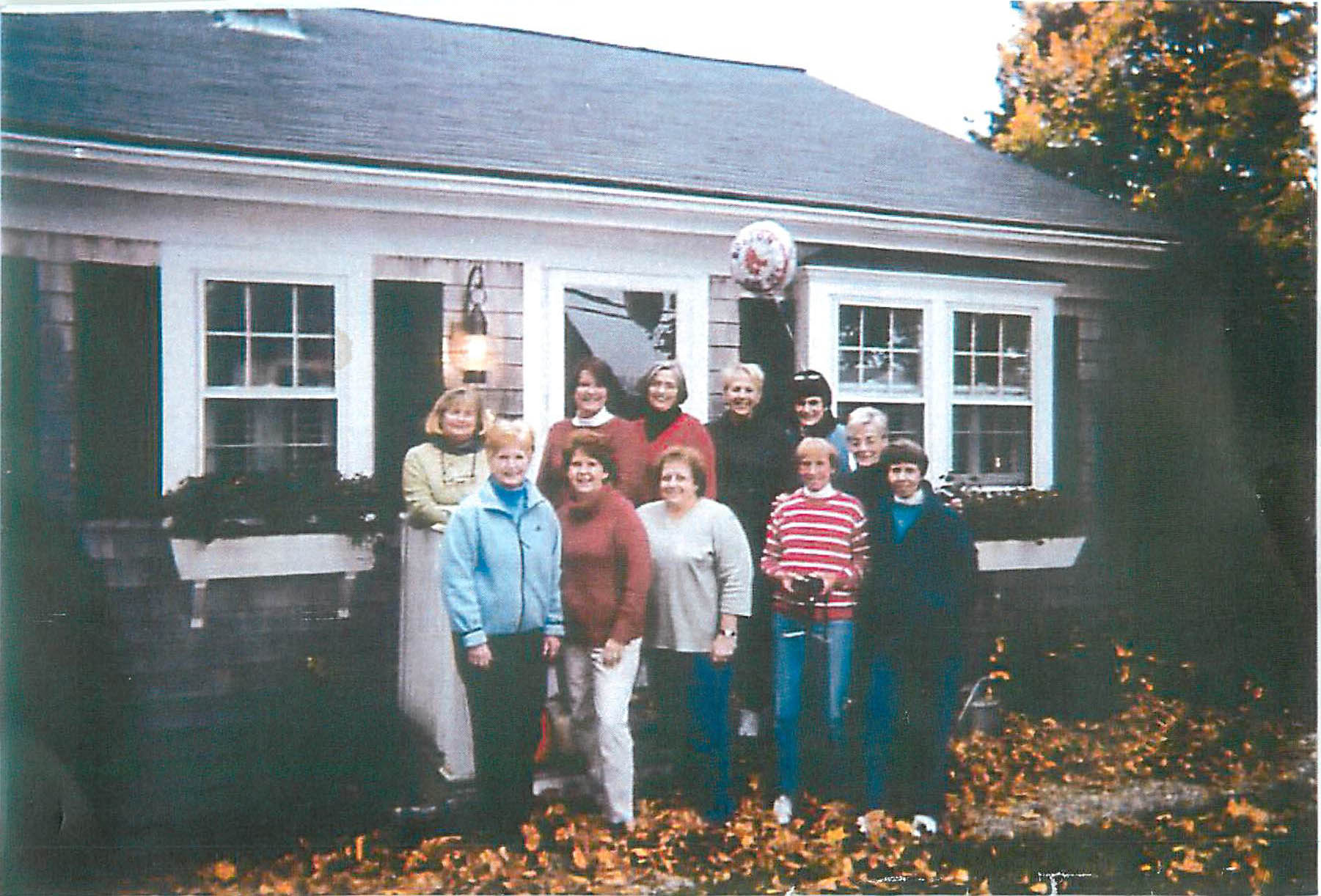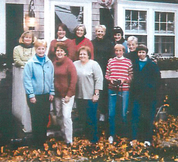 Pictured in this Cape Cod photo of a few years ago are front row: Patty Powers, Sue Heaslip, Judy Boujicanian, Debbie and Linda Stone (with Beth Rooney between them) Back row: Maureen Sheehy (Moz), Mary Ann Hutton, Jane Woodbury, Diane Griffin and Nancy McNiff