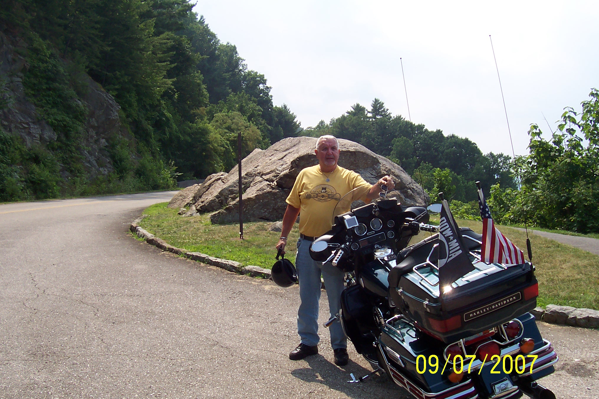 Ski and his Harley somewhere onthe Blueridge ParkWay 2009 |